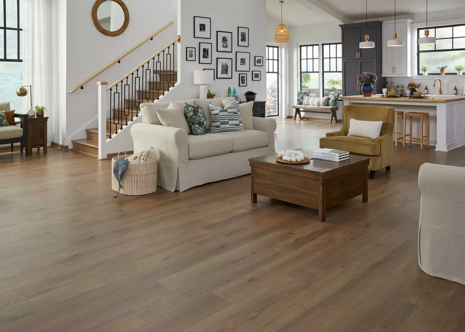 - Professional hardwood installation with clean seams